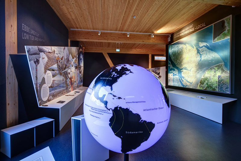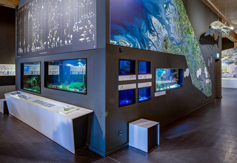 Beim Rundgang durch die Dauerausstellung begibst du dich über drei Etagen auf Entdeckungstour durch 14 verschiedene Themenbereiche. Dabei erfährst du mehr über Naturphänomene wie das Geestkliff oder die Küstenheide und entdeckst unterwegs Seewasseraquarien, Modelle und interaktive Stationen.